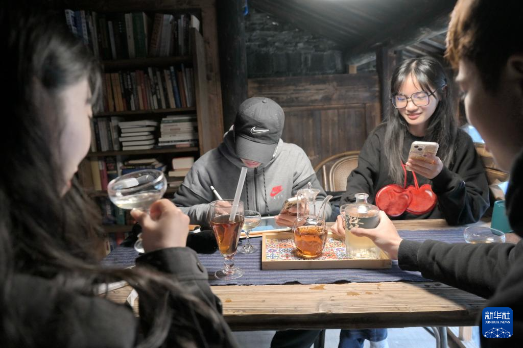 4月9日,年轻消费者在福鼎白琳老街“同顺泰”茶号品尝新式茶饮料。