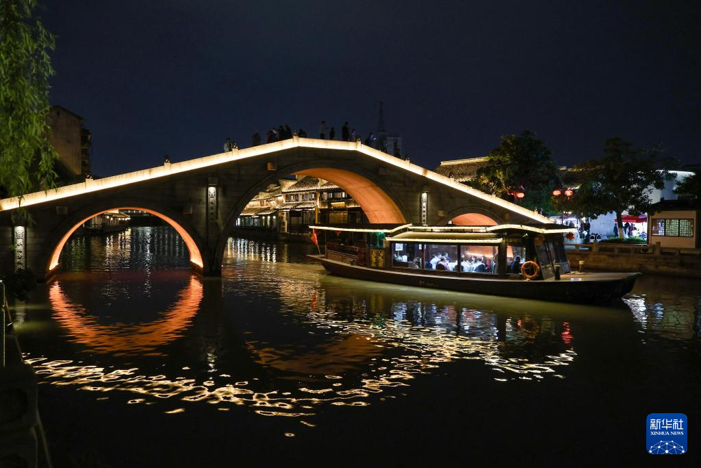 4月26日,游船行驶在流经嘉兴市月河历史街区的京杭大运河上。