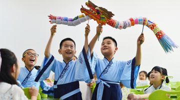 6月12日,观众在位于嘉兴市艺术文化中心的秀洲非遗馆内观看非遗民俗展示。