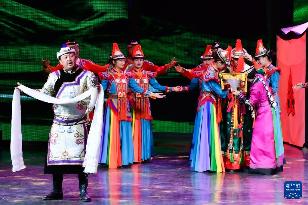 7月12日,张掖市肃南县非物质文化遗产保护传承中心演员表演国家级非遗代表性项目裕固族婚俗。