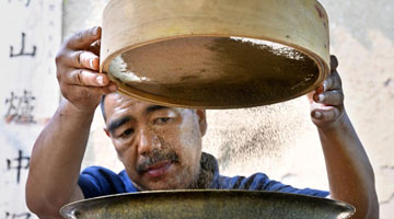这是新疆库车市龟兹魏晋古墓遗址博物馆展出的陶器(7月15日摄)。