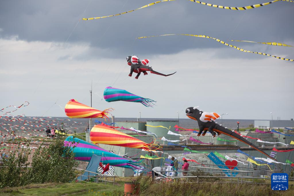 这是8月24日在俄罗斯圣彼得堡喀琅施塔得岛拍摄的风筝。