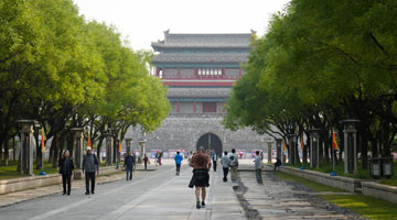 10月11日,几名大学生在丹巴县拍摄藏族古碉群。