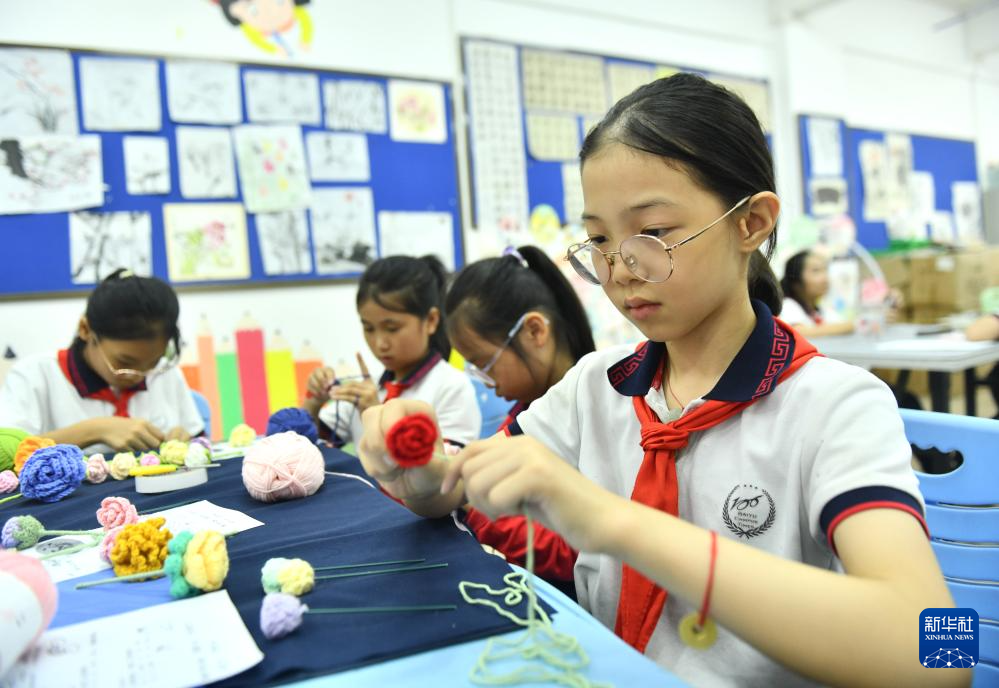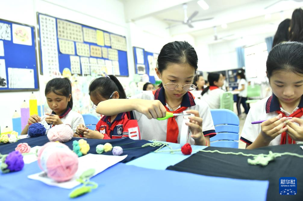 近年来,广西梧州市长洲区凤翔小学在民族团结进步创建工作中,将手工编织、漆扇等传统文化引进课堂,让孩子们在丰富多彩的活动中,传承非遗文化。