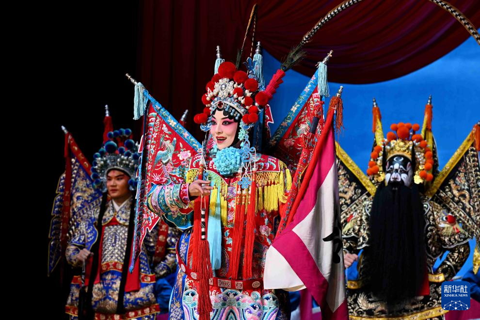 11月1日晚,国家京剧院演员在石家庄人民会堂表演京剧《穆桂英挂帅》。