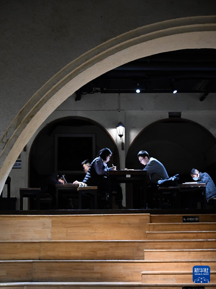 12月16日,读者在青海省西宁市城西区五峰书院阅读。