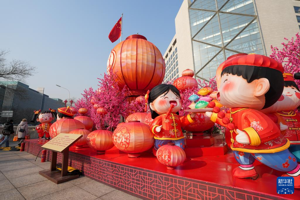 为传承春节文化,烘托传统年味,北京以“非遗贺新春 京城过大年”为主题,布置春节景观,迎接新春佳节。据介绍,北京共悬挂灯笼灯饰及各类装饰26万余件,设置景观小品256余处,在10处地标建筑播放春节主题光影艺术,开启2969处景观照明设施,营造出喜庆热闹的节日氛围。