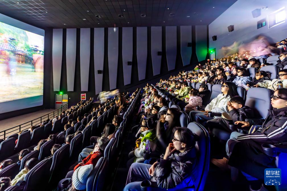 1月31日,观众在贵州省黔西市的一家电影城观看春节档电影《哪吒之魔童闹海》。