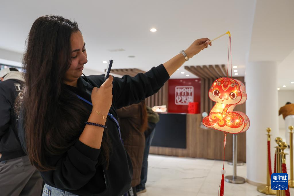 当日,元宵节庆祝活动在拉巴特中国文化中心举行。摩洛哥民众体验蛇形灯笼制作,庆祝元宵节。