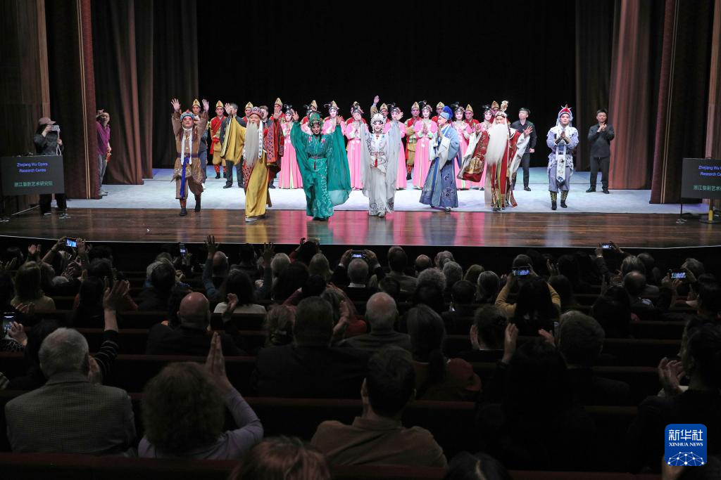 4月5日,在奥地利首都维也纳,演员在婺剧《白蛇传》演出结束后谢幕。