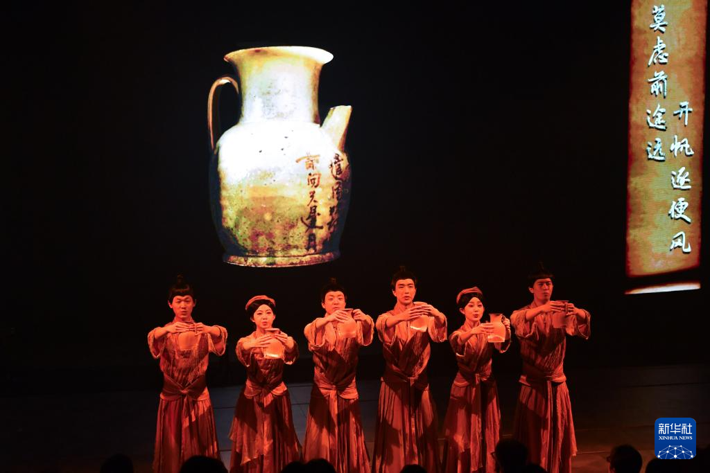 4月12日,演员在舞台剧《寻长沙》中演奏青铜铙。