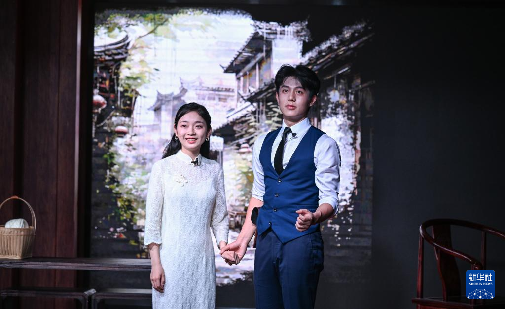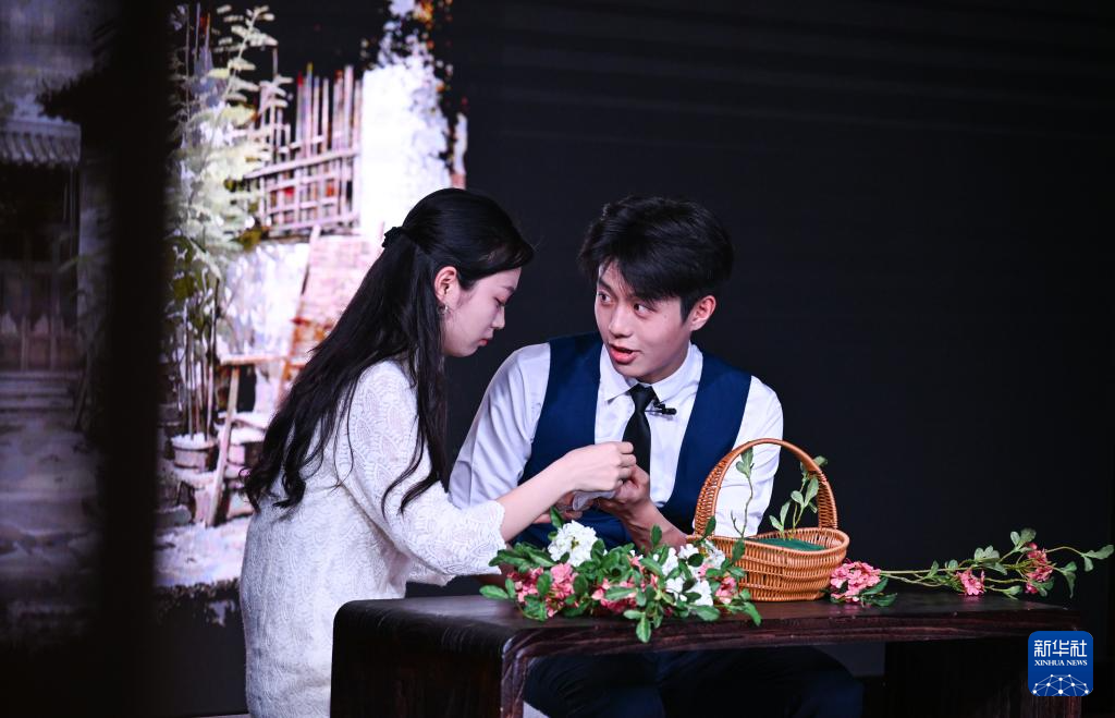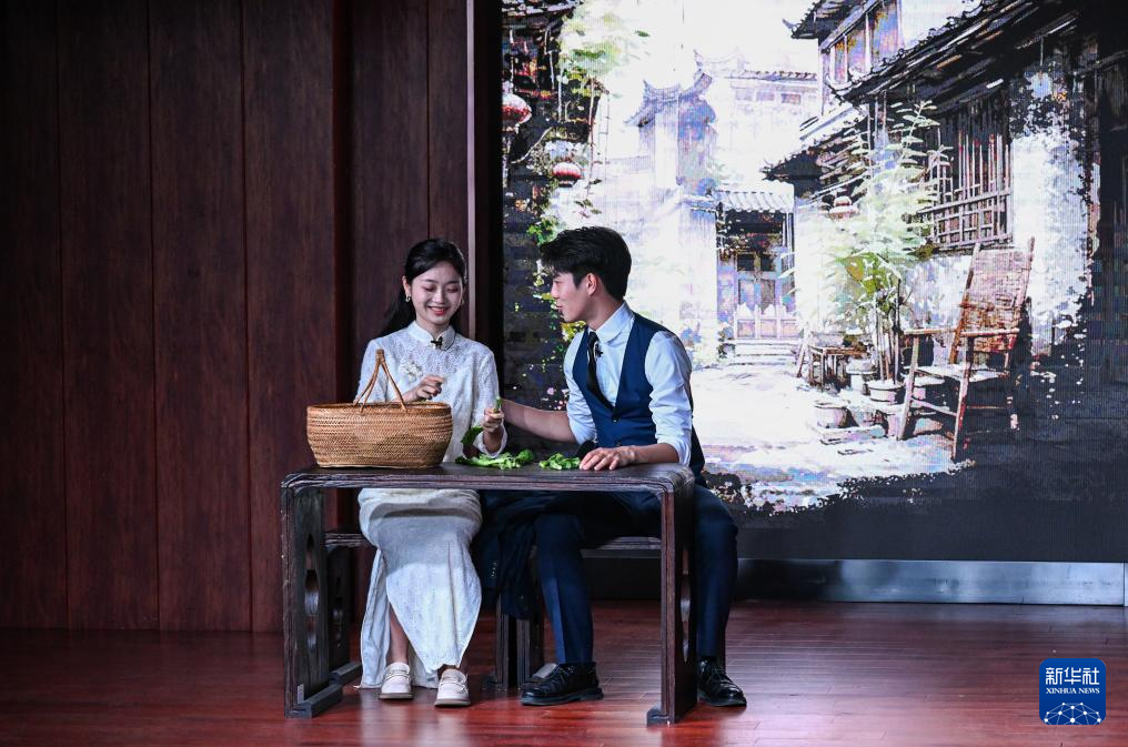4月16日,在重庆市沙坪坝区文化馆,演员表演话剧《青山见》。