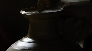 6月17日,制陶师傅在桂东县普乐镇陶瓷作坊制作陶器。
