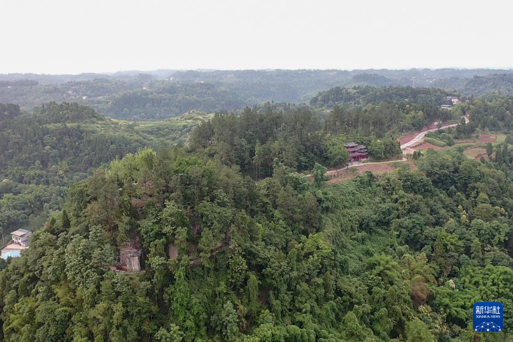 茗山寺所在的虎头山,左前方小山包处便是茗山寺(无人机照片,6月14日摄)。