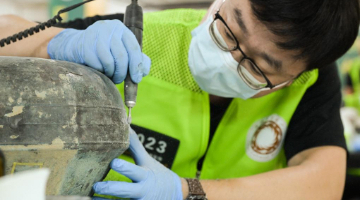 7月8日,媒体人员在“宁夏固原文物精品展”上拍摄展品凸钉玻璃碗。