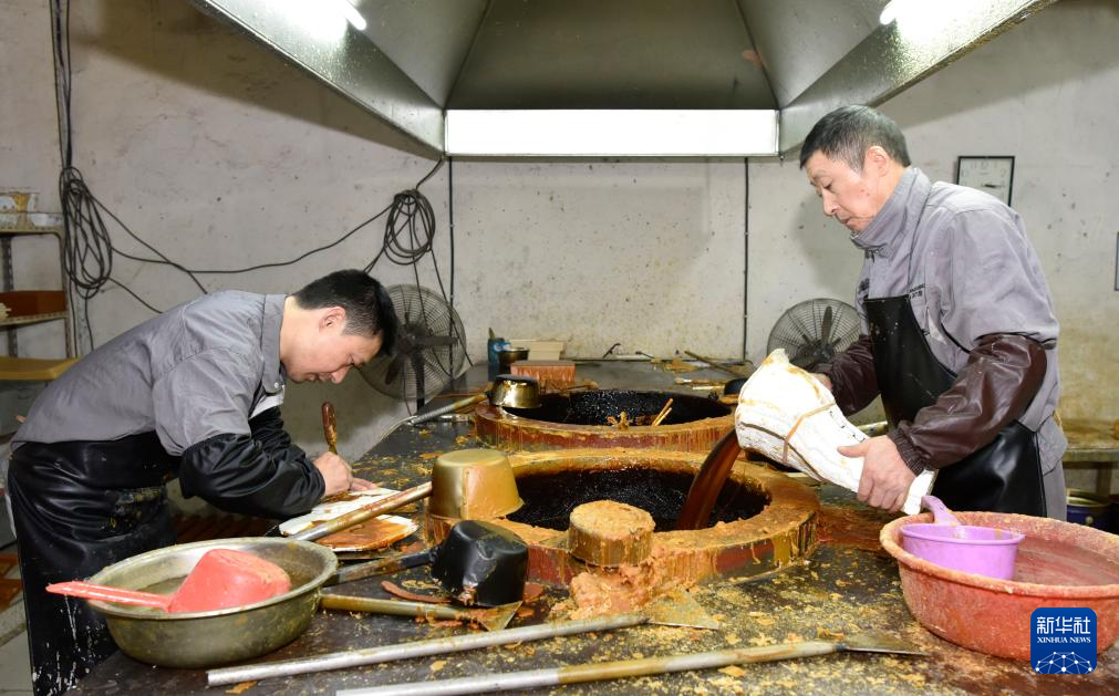 10月29日,安徽铜陵一家铜器制作企业的铜艺工人在把蜡模沾浆制壳。