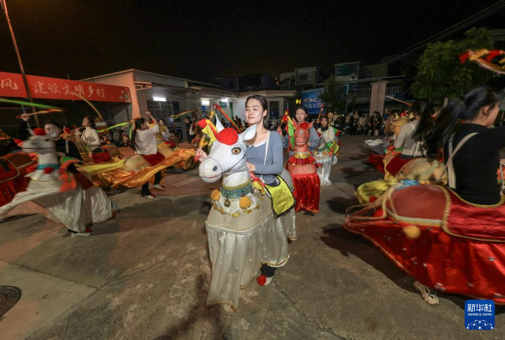 新春将至,广东省潮州市饶平县处处洋溢着喜庆的节日氛围,当地居民正紧锣密鼓地排练独具特色的布马舞,为春节期间的庆典活动做准备。