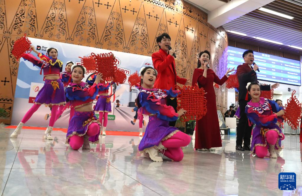 来自广西歌舞剧院、广西戏剧院的演员2月4日在印度尼西亚雅加达雅万高铁哈利姆站上演“马上有福”城市快闪活动,传递浓厚的农历春节气氛。