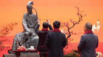2月25日,参赛选手在雕刻作品。