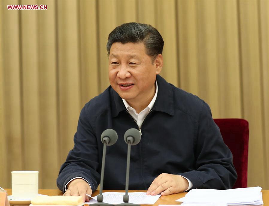Chinese President Xi Jinping, also general secretary of the Communist Party of China (CPC) Central Committee and chairman of the Central Military Commission, addresses the opening session of a workshop in Beijing, capital of China. A workshop for provincial and ministerial officials was held from Wednesday to Thursday in preparation for the 19th National Congress of the CPC. (Xinhua/Ma Zhancheng)