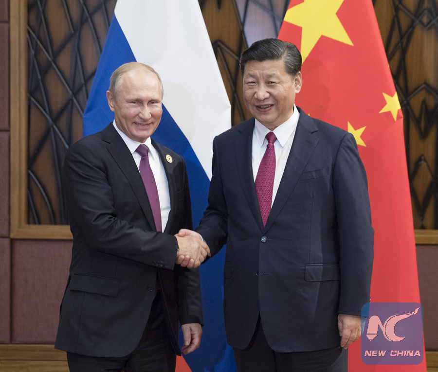 Chinese President Xi Jinping (R) meets with his Russian counterpart Vladimir Putin in Da Nang, Vietnam, Nov. 10, 2017. (Xinhua/Lan Hongguang)