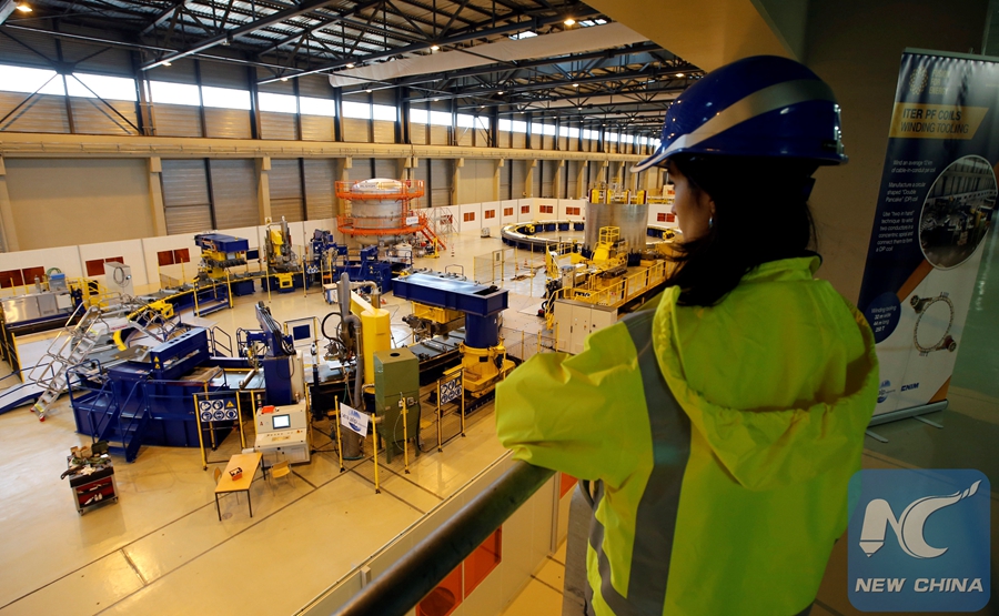 A technician looks inside the building where four Poloidal Field coils will be manufactured at the construction site of the International Thermonuclear Experimental Reactor (ITER) in Saint-Paul-lez-Durance, Southern France, October 6, 2016. (REUTERS)