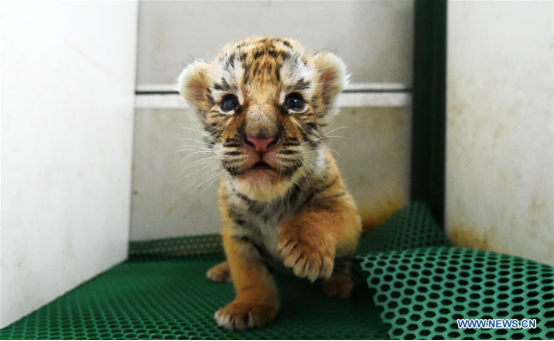 A Siberian tiger cub is seen in the Hengdaohezi Felid Breeding Center in northeast China's Heilongjiang Province, April 24, 2017. (Xinhua/Wang Jianwei)?