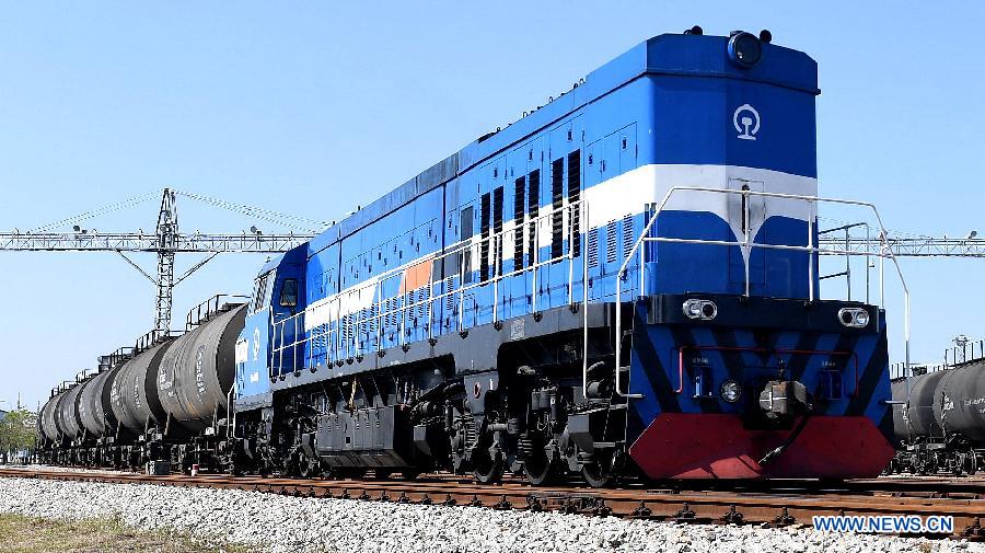 Photo taken on Dec.19, 2017 shows an oil-gas freight train leaving Qinzhou port insouth China's Guangxi Zhuang Autonomous Region. By making full use of its geographical location and the potential of coastlines and border areas, Guangxi capitalized on its advantages and played a bigger role in the Belt and Road Initiative. Through ports and the Beibu Gulf Economic Zone, the trade cooperation between Guangxi and ASEAN countries gained great prospects. (Xinhua/Zhang Ailin)