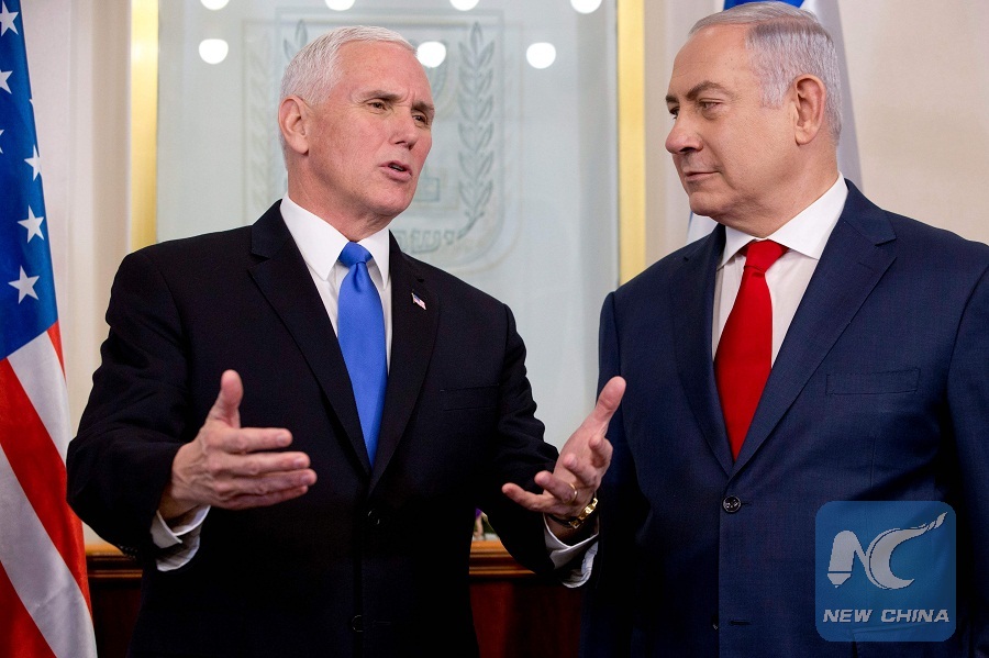 JERUSALEM, Jan. 22 (Xinhua) -- U.S. Vice President Mike Pence on Monday reiterated the U.S. recognition of Jerusalem as the capital of Israel and vowed to relocate the U.S. embassy from Tel Aviv to Jerusalem before the end of 2019.