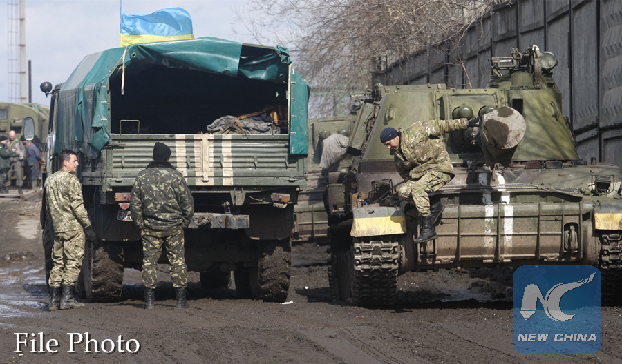 Ukrainian armed forces are withdrawing rocket launchers from eastern Ukraine in accordance with the Minsk peace agreements on March 6, 2015. (Xinhua/SIPA)