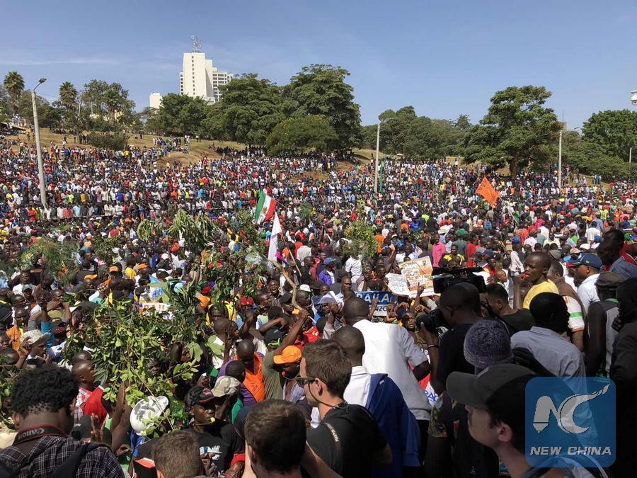 Opposition supporters gather at Nairobi's Uhuru Park on Jan. 30, 2018. (Xinhua/Chen Cheng)