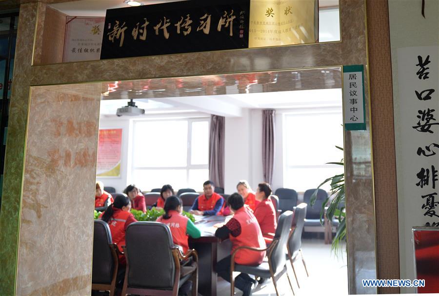 Wu Yaqin and her peers have a meeting at Changshanhuayuan community in Tuanshan sub-district, Kuancheng district, Changchun City of northeast China's Jilin Province, Dec. 11, 2017. Wu Yaqin, a delegate to the 19th National Congress of the Communist Party of China, served as a community Party secretary. "Serving the people wholeheartedly is to treat even minor problems of the others' as major hardships of your own." This is a motto of Wu and her peers working in the communities. (Xinhua/Wang Huajuan)