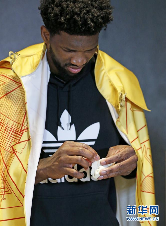 Joel Embiid, a star player for the NBA's Philadelphia 76ers makes traditional Chinese dumplings on Feb. 15, 2018. (Xinhua/Li Ying)