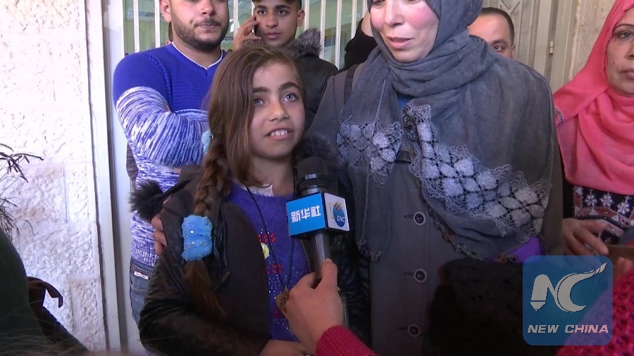 RAMALLAH, Feb. 28 (Xinhua) -- 13-year-old Gaza girl In'am Al-Attar was reunited with her mother Salwa Al-Attar Wednesday after arriving in Ramallah to receive kidney transplant amid current humanitarian crisis.