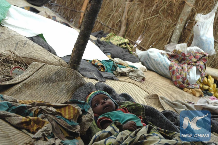 File photo shows a baby in a refugee camp in Ituri Province, Sept. 11, 2006. (Xinhua Photo/Wang Xiaojun)