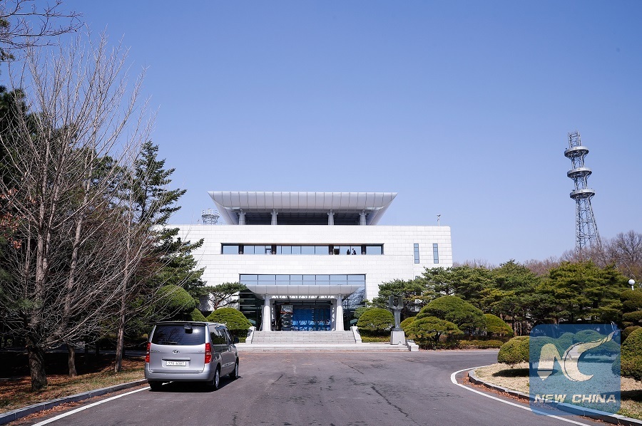 The Peace House, a South Korean building at the border village of Panmunjom in the demilitarized zone (DMZ), is seen in this picture taken on April 18, 2018. (Xinhua/Wang Jingqiang)