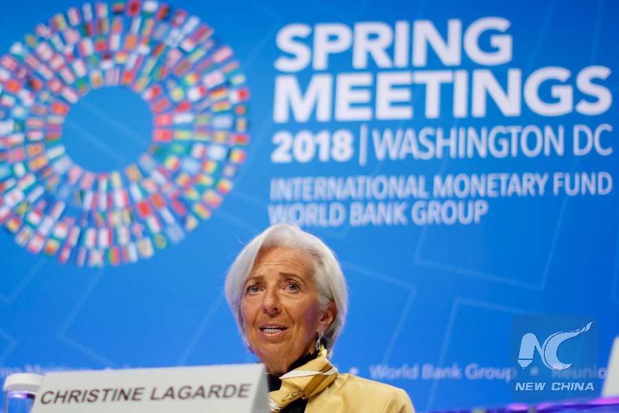 WASHINGTON, April 19 (Xinhua) -- Christine Lagarde, Managing Director of the International Monetary Fund (IMF), on Thursday urged policymakers to steer clear of all protectionist measures amid rising trade tensions between the United States and its major trading partners.