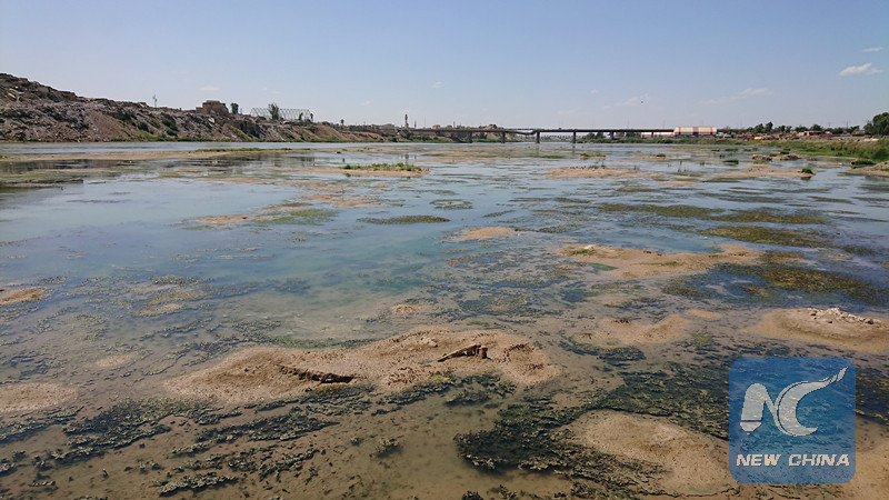 Photo taken on June 3, 2018 shows the low water level of Tigris River in Mosul, Iraq. (Xinhua/Yasser Jawad)