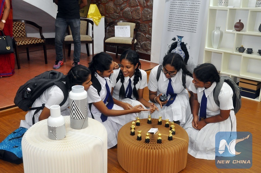 Local students visit the "Silk Road Memory - NICE Choice Exhibition of Chinese Creative Cultural Products" exhibition in Colombo, Sri Lanka, June 12, 2018. (Xinhua/Ajith Perera)