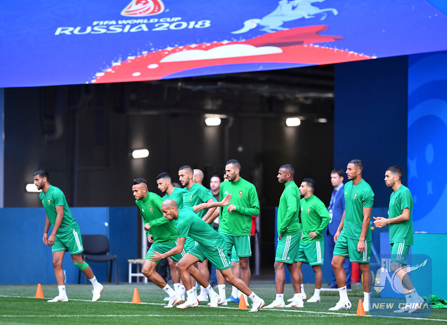Moroccan players take training at Saint Petersburg Stadium, Saint Petersburg, Russia on June 14, 2018. (Reuters photo)