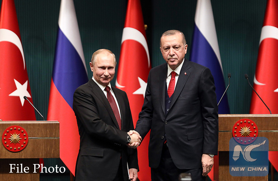 MOSCOW, July 14 (Xinhua) -- Russian President Vladimir Putin and his Turkish counterpart Recep Tayyip Erdogan discussed joint steps on the settlement of the Syrian crisis over the phone, the Kremlin said Saturday.