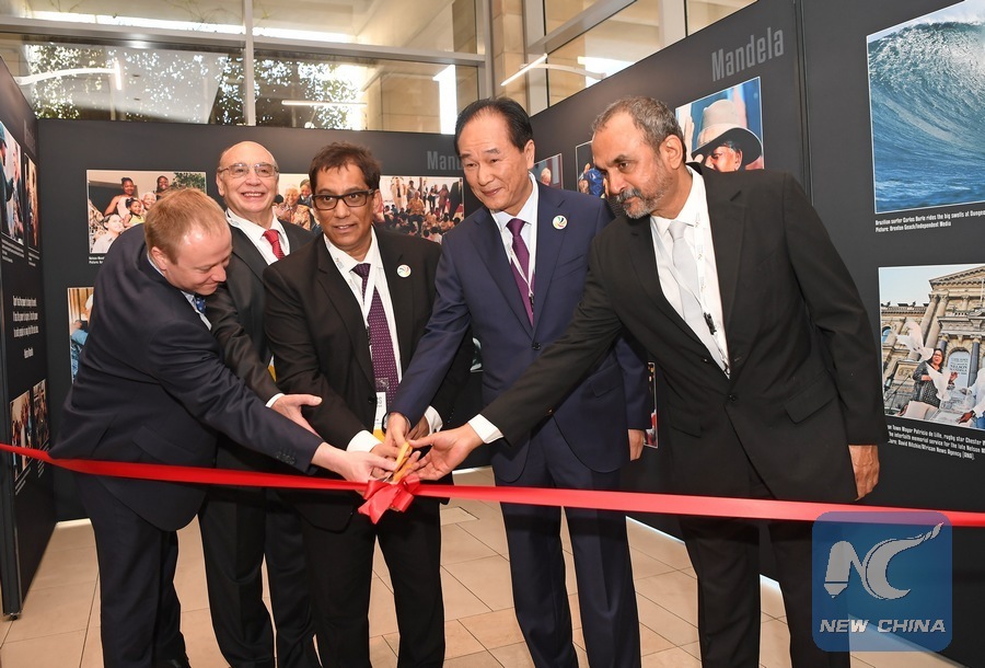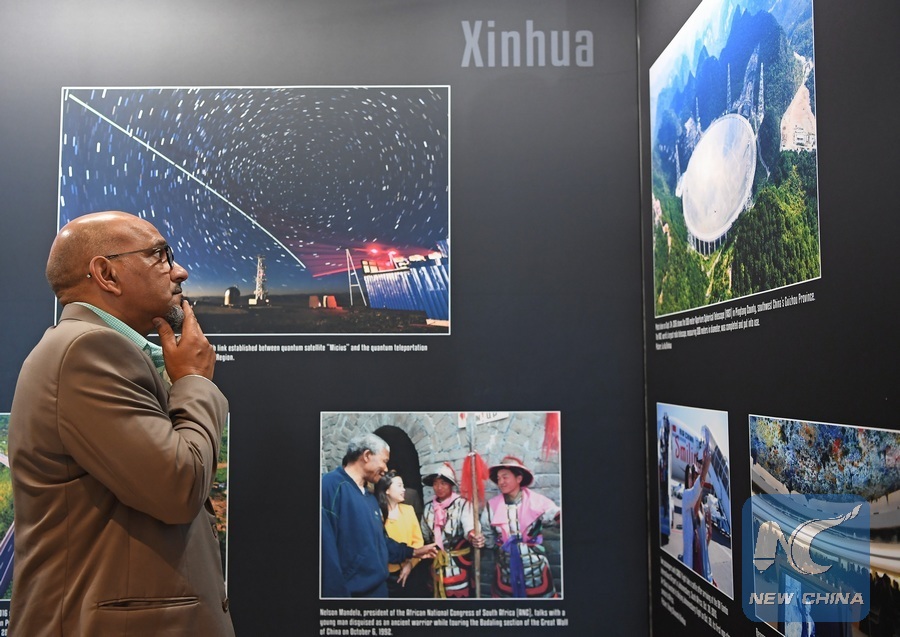 The exhibition, displaying 98 pictures selected by media groups from Brazil, Russia, India, China and South Africa, has been jointly organized by China's Xinhua News Agency and South Africa's Independent Media.