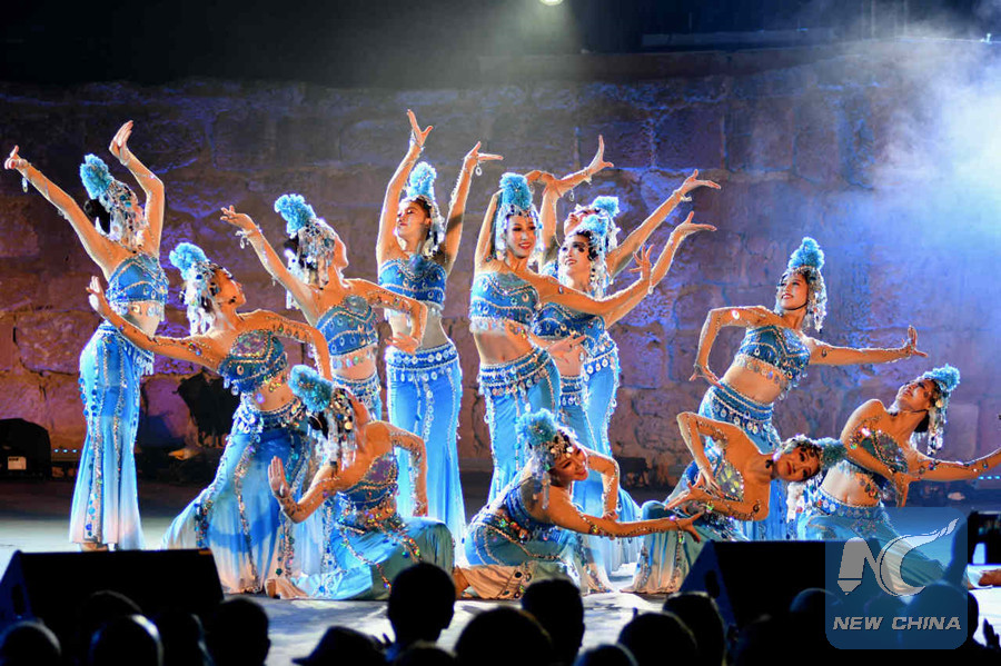 This special art performance is part of the 54th International Carthage Festival in Carthage Amphitheatre in Tunis, capital of Tunisia. (Xinhua/Ma Di)