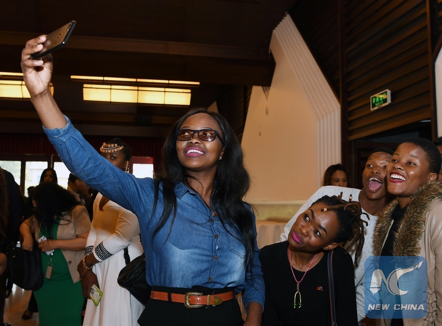South African recipients of the Chinese government scholarships take a selfie during a send-off event in Pretoria, South Africa, Aug. 16, 2018. (Xinhua/Chen Cheng)