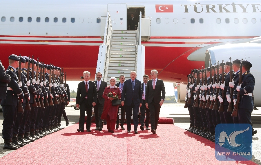 ANKARA, Sept. 27 (Xinhua) -- Turkish President Recep Tayyip Erdogan paid a state visit to Germany on Thursday after four years in a bid to restore deeply eroded relations and boost economic cooperation as tensions in Ankara-Berlin ties appear to have been eased.