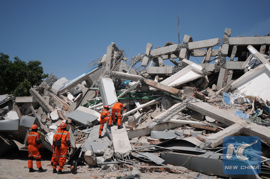 An Indonesian rescue team searches for victims and survivors at the earthquake-damaged Roa Roa hotel in Palu, Central Sulawesi, Indonesia, on Oct. 1, 2018. (Reuters photo)