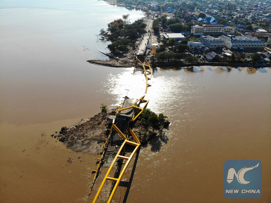 A collapsed bridge is pictured in Palu, Indonesia's Central Sulawesi on Oct. 1, 2018. (AFP photo)
