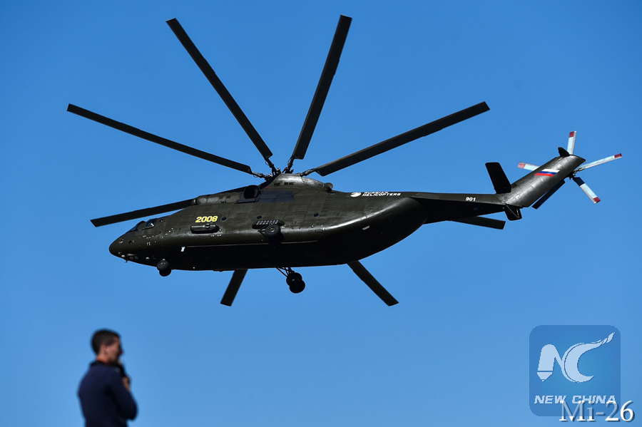 A Russian Mi-26 heavy transport helicopter performs on rehearsal day for the MAKS-2015, the International Aviation and Space Show, in Zhukovsky, outside Moscow, on August 21, 2015. (AFP Photo)