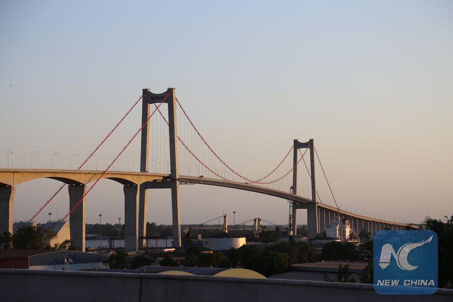 Photo taken on Nov. 9, 2018 shows a view of the Maputo Bay Bridge in Mozambique. (Xinhua/Nie Zuguo)
