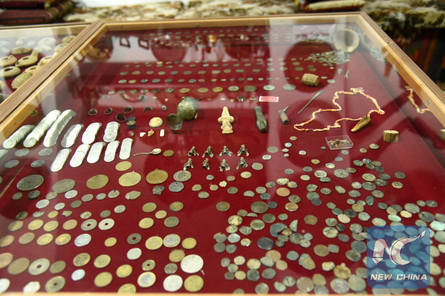 Photo taken on Nov. 13, 2018 shows old coins and accessories collected by Esmat Zain al-Deen, a man who has turned his guest house into a small museum in Sweida, Syria. (Xinhua/Hummam Sheikh Ali)